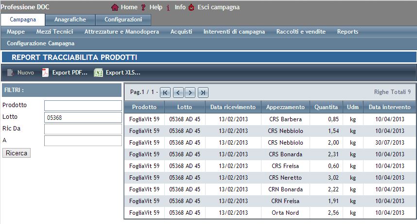 Ogni attività, trattamento o materia prima utilizzata viene registrato con precisione nel database di Professione DOC Wine.
